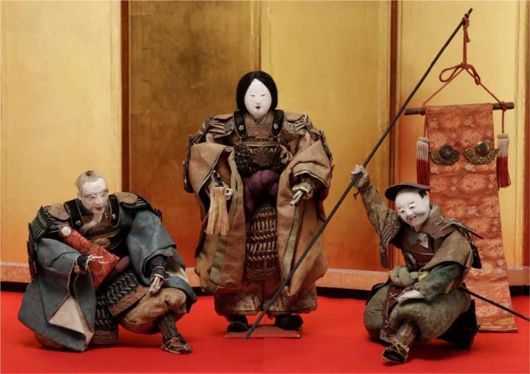 おおらかで、豪快、勇者の心意気が伝わってきそうな神功皇后、武内宿祢、旗持、三躯の五月人形。