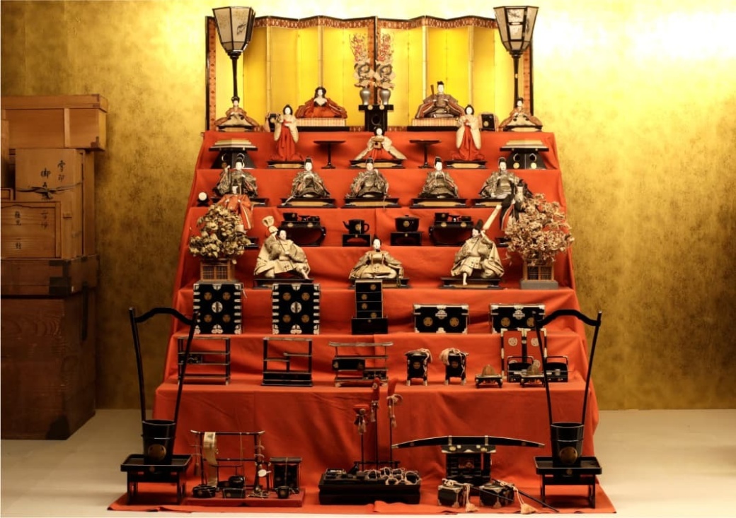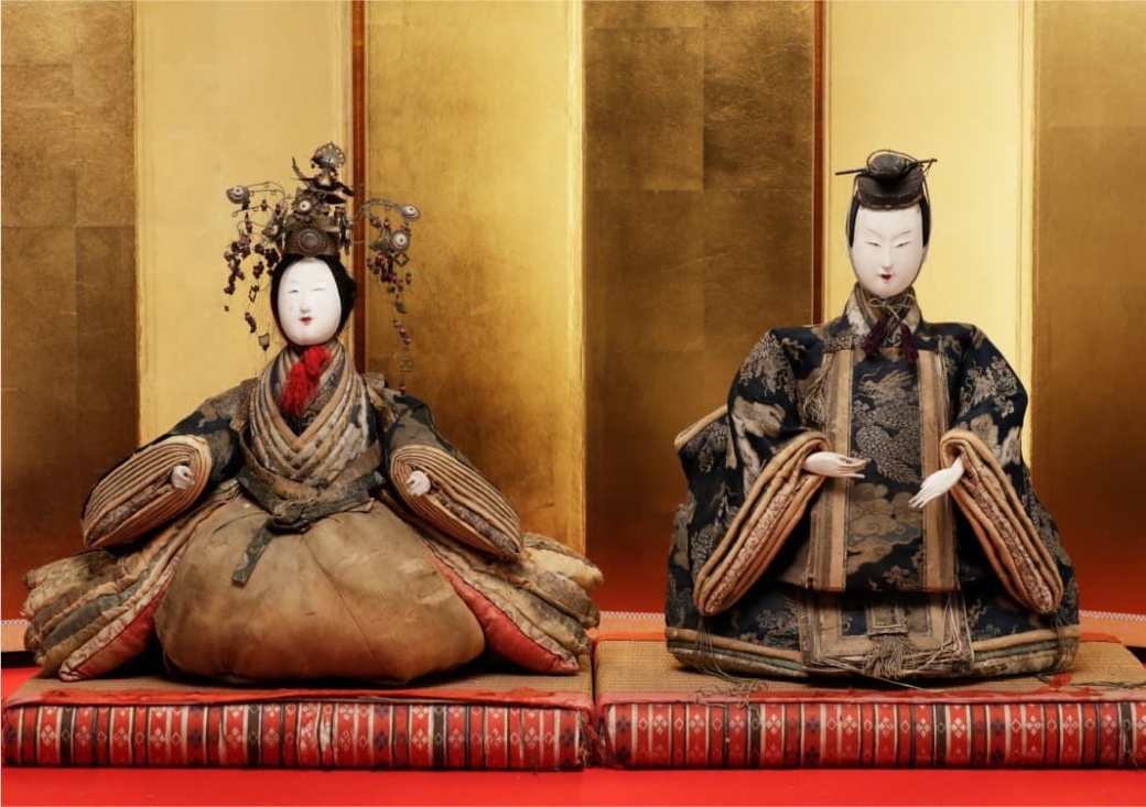 徳川家十一代将軍・家斉候ゆかりの雛人形や、美しい光沢と風合いを持つ正絹の金襴織物を纏った江戸時代中期の作品群など、国宝級の名作を多数展示しています。