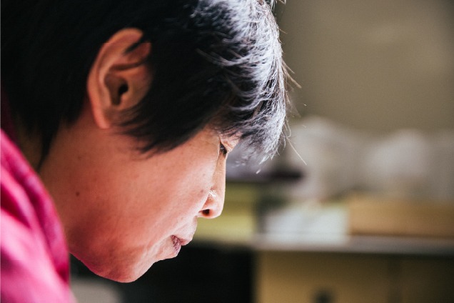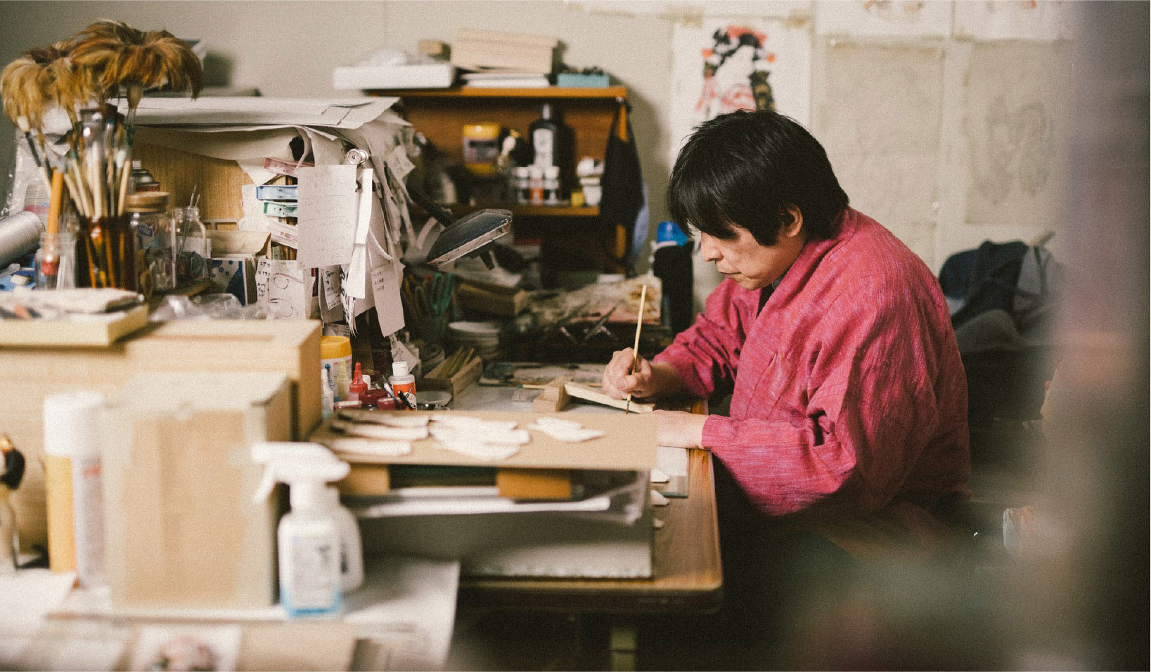 羽子板の面相師(顔を描く職人)として活躍する中村。