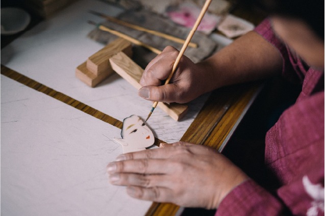 面相描きを始めて20年以上も経ちますが、この年になってもまだまだ勉強中だなと感じます。特に目の表現が難しくて、描く線のほんの少しの違いでお顔の表情がガラッと変わるので、奥が深く、面白い世界だなと思います」