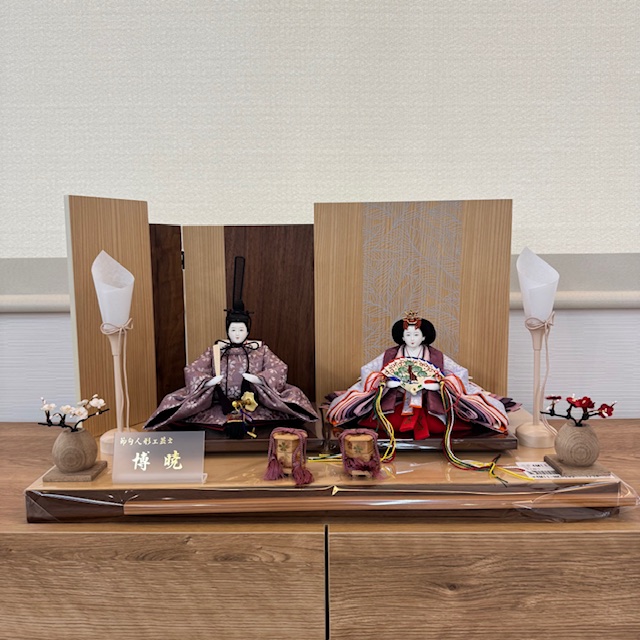親王飾りは、博暁氏が手がける平飾りの雛人形です。繊細な細工と華麗な色使いが際立つ、まるで絵画のような美しい作品です。各部のディテールにこだわり、伝統的な技法を用いながらも、洗練されたモダンなデザインが特徴です。