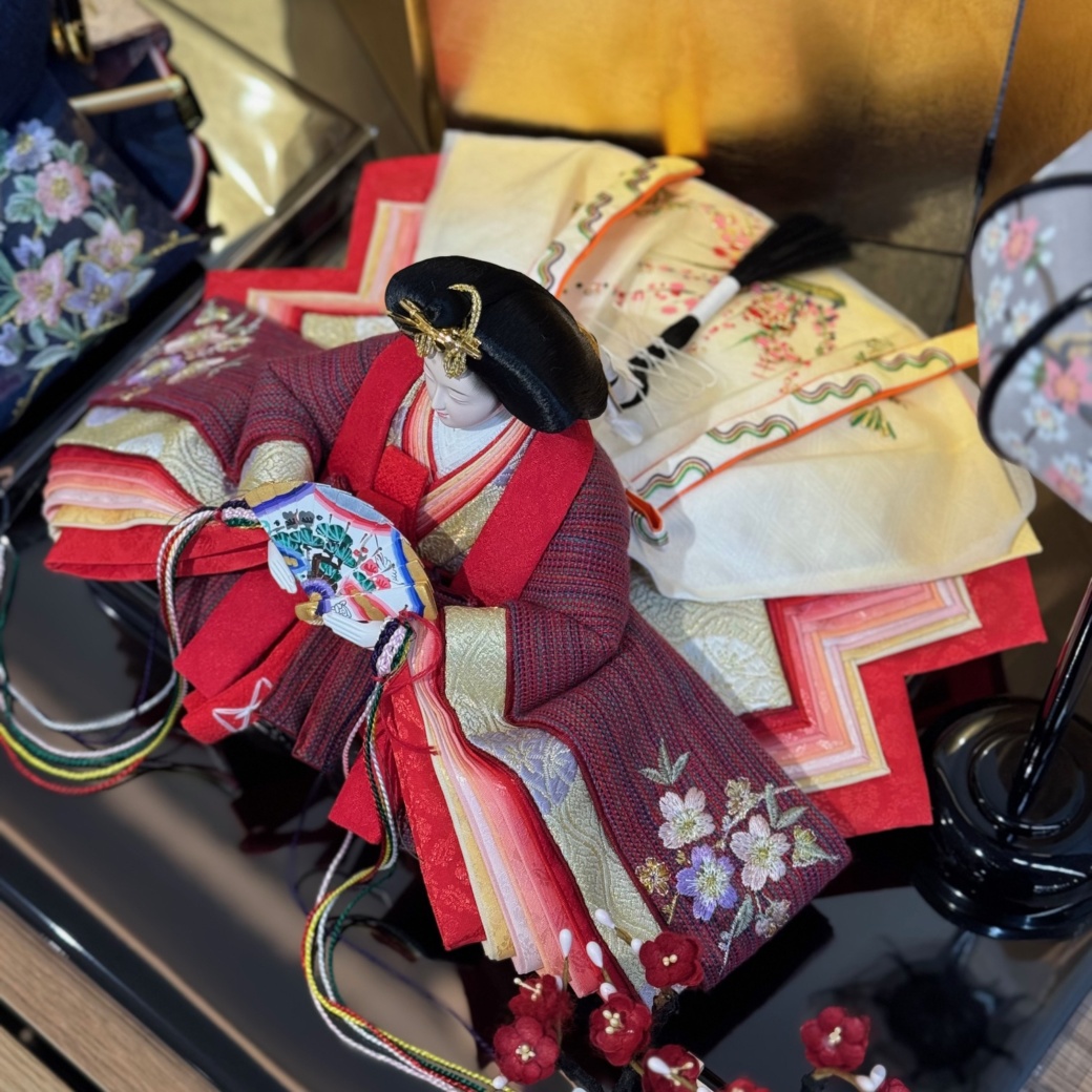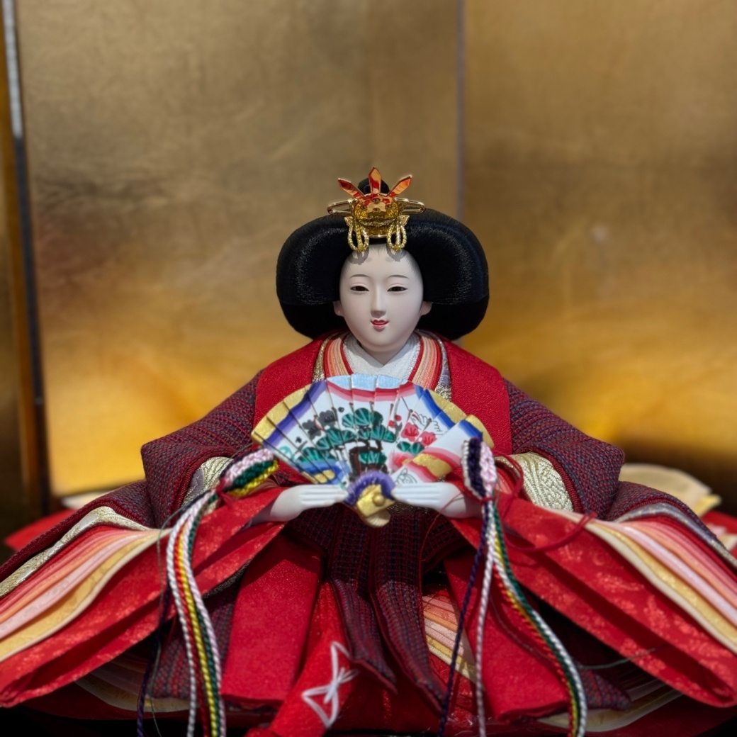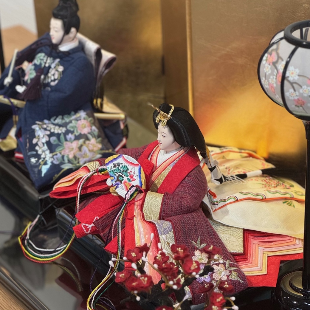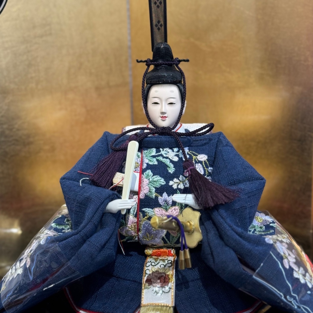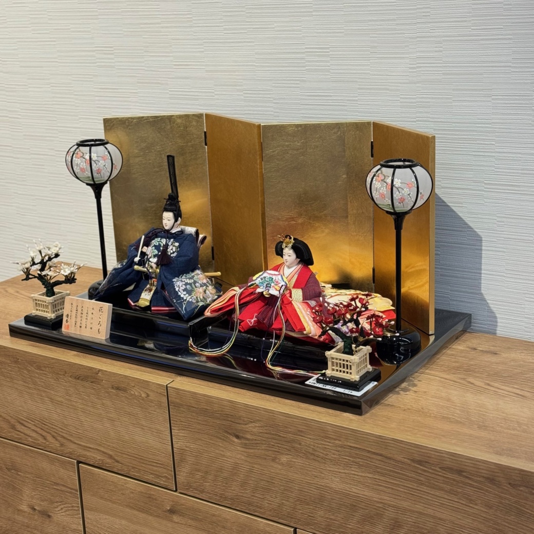 豪華な衣裳に身を包む親王平飾りは、大きめのサイズで存在感抜群。伝統工芸の技術を駆使した節句人形工芸士によって、1つ1つ丁寧に作り上げられています。