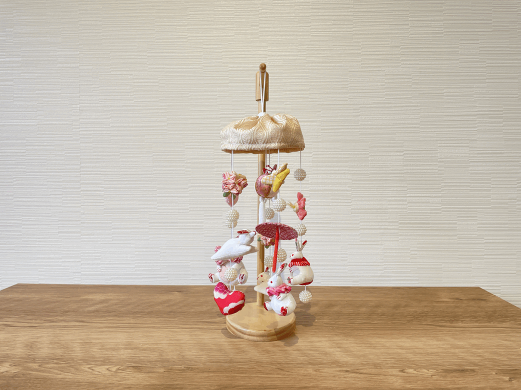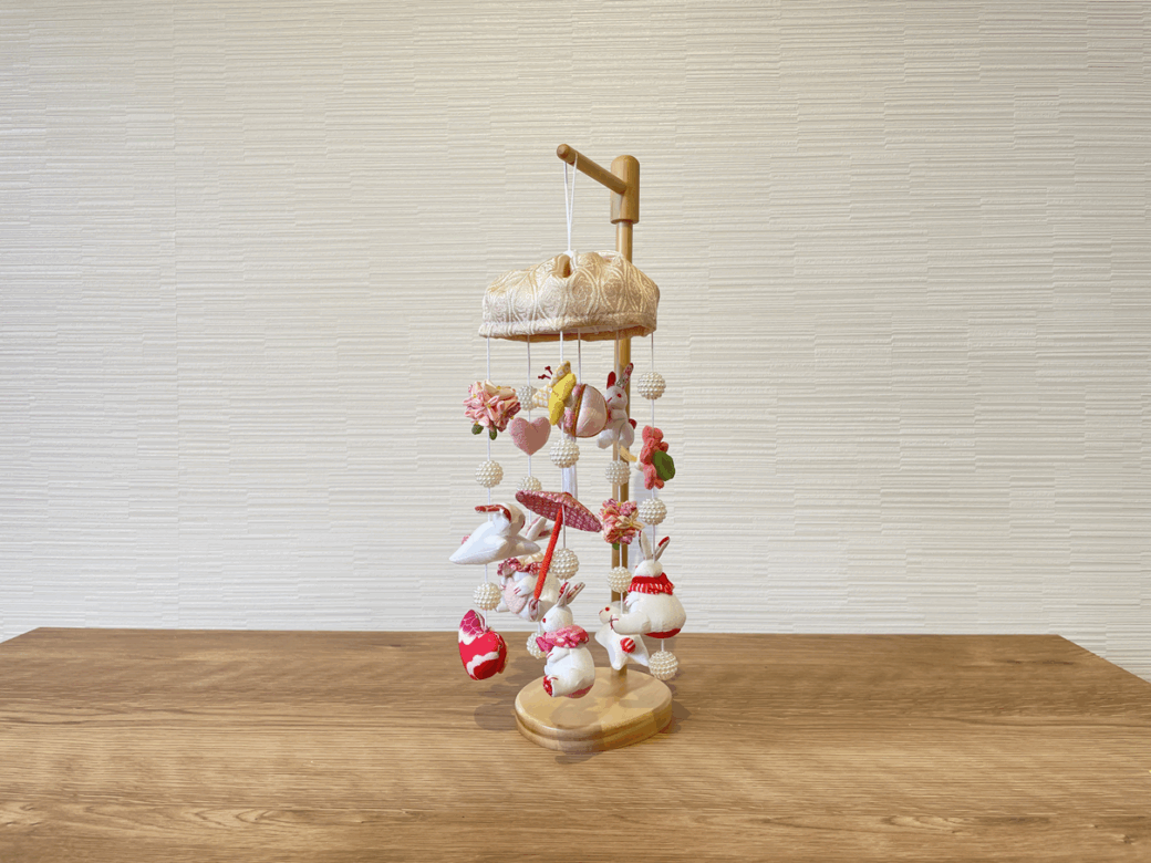 飾物 つるし飾り ミニうさぎっ子べ-ジュ台付