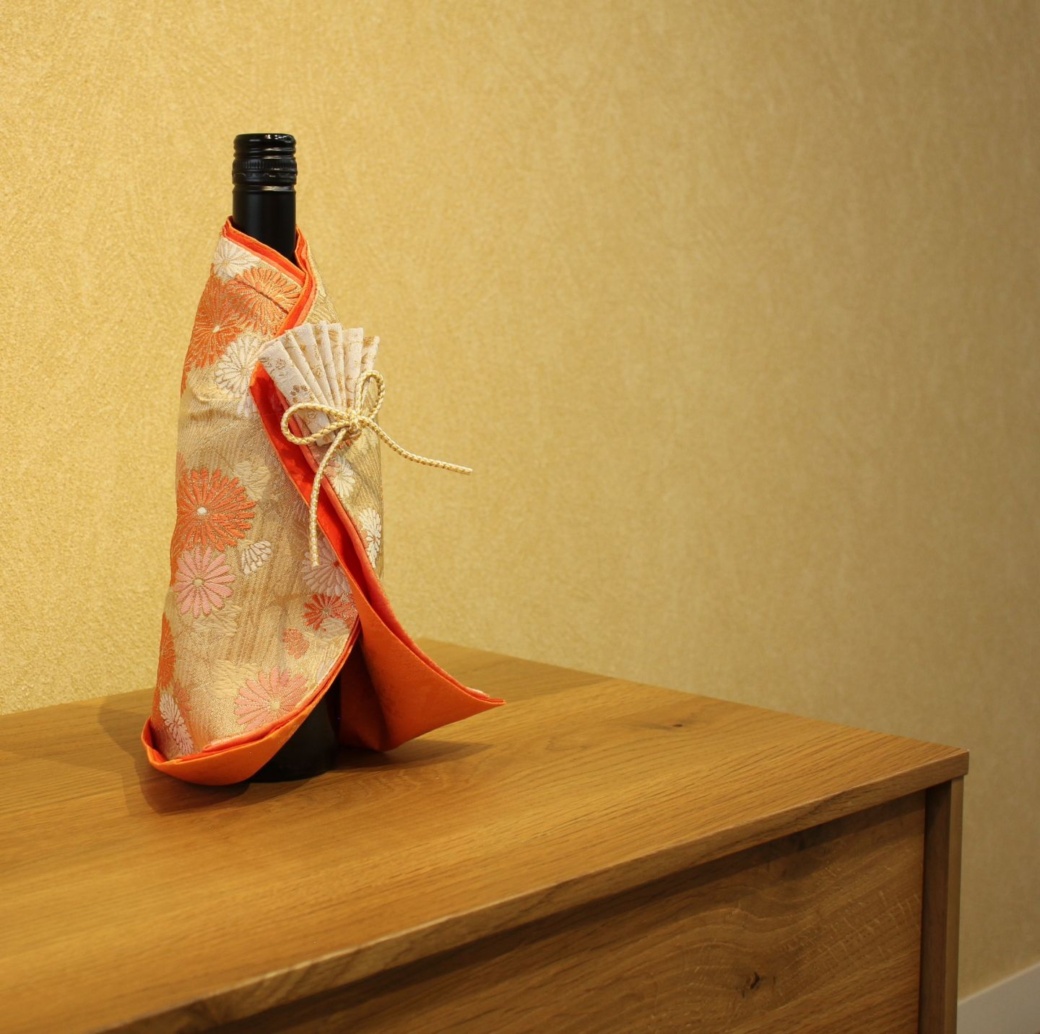 こちらのボトルカバー商品は雛人形制作で生じる端切れ生地等を用いて制作しています。