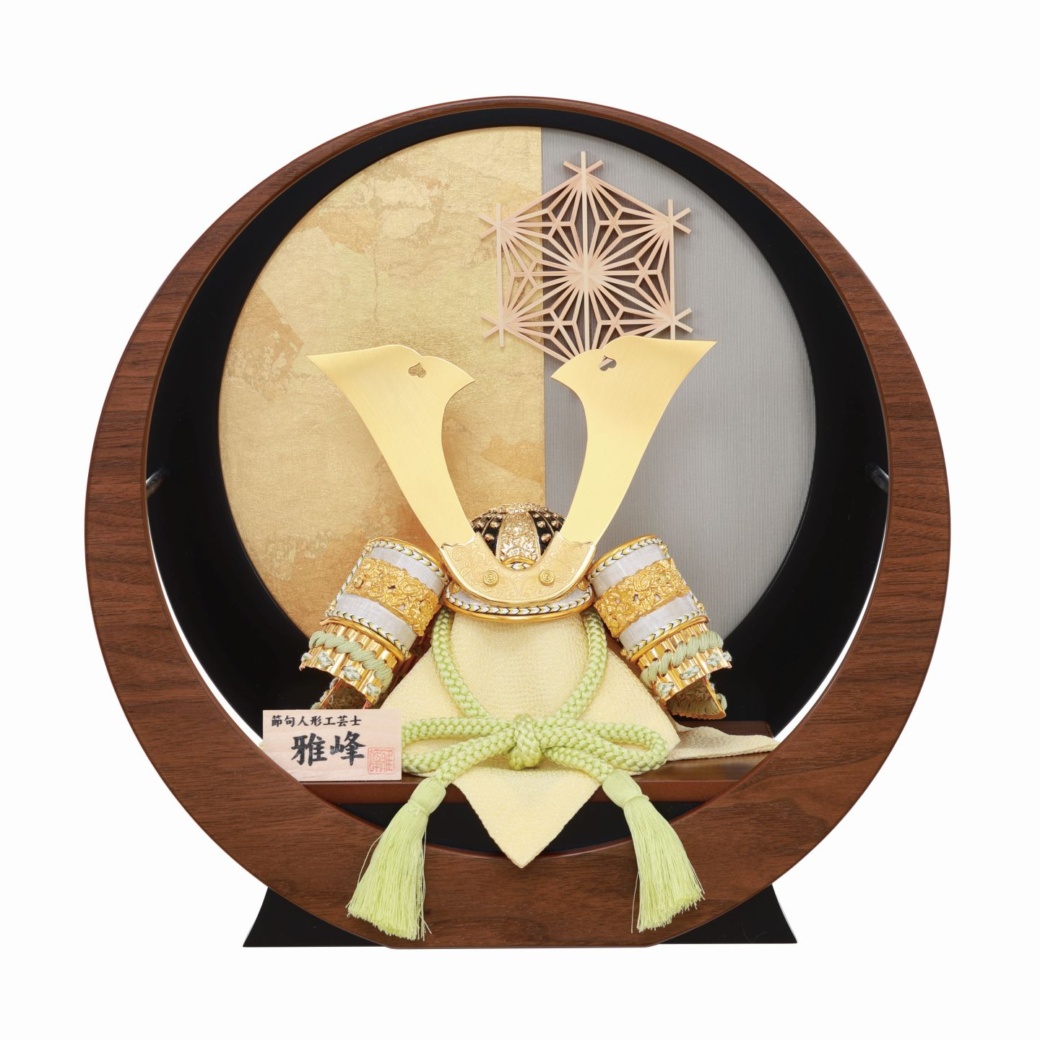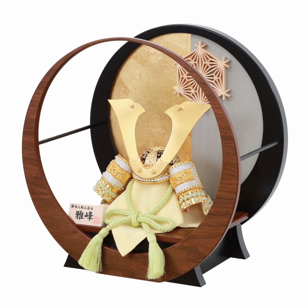 ウォールナットの円形型飾台には、大川組子細工を施し豪華に仕上げました。