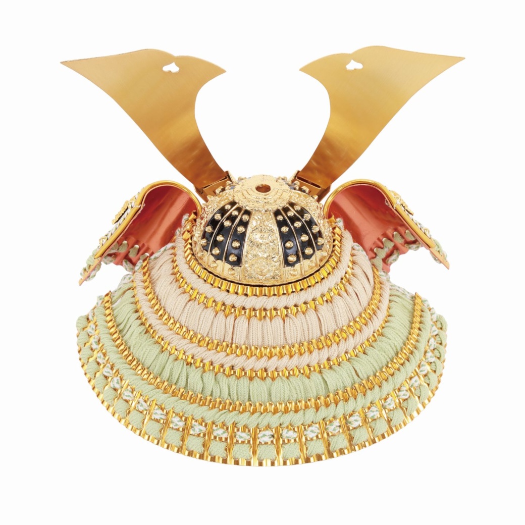 勇ましい中鍬と薄水色の忍緒が印象の兜セットです。