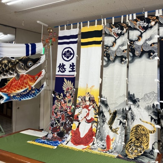 併せて五月人形(兜・鎧)、名前旗なども展示しております。