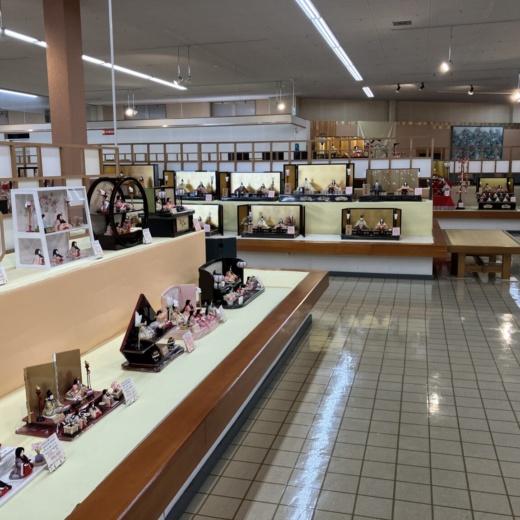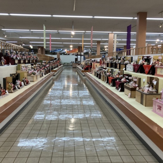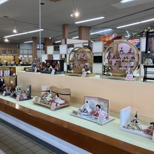 八女人形会館では現在、お正月飾りの羽子板・破魔弓をはじめ、雛人形・五月飾りの展示・販売を行っております。