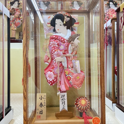 お正月を控えたこの時期、八女人形会館では豊富な種類の羽子板・破魔弓飾りを展示・販売しております。