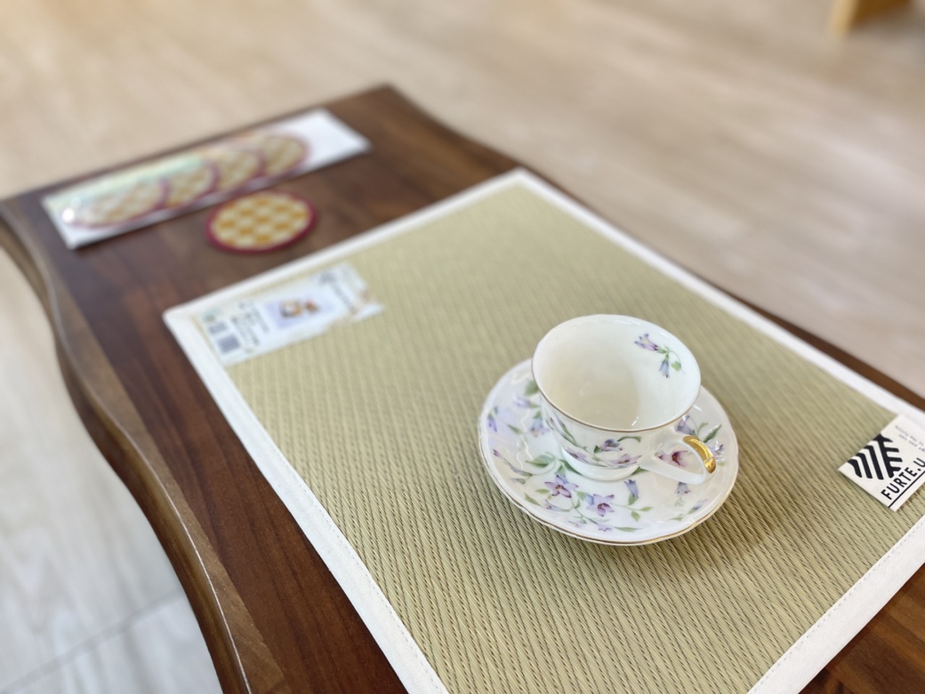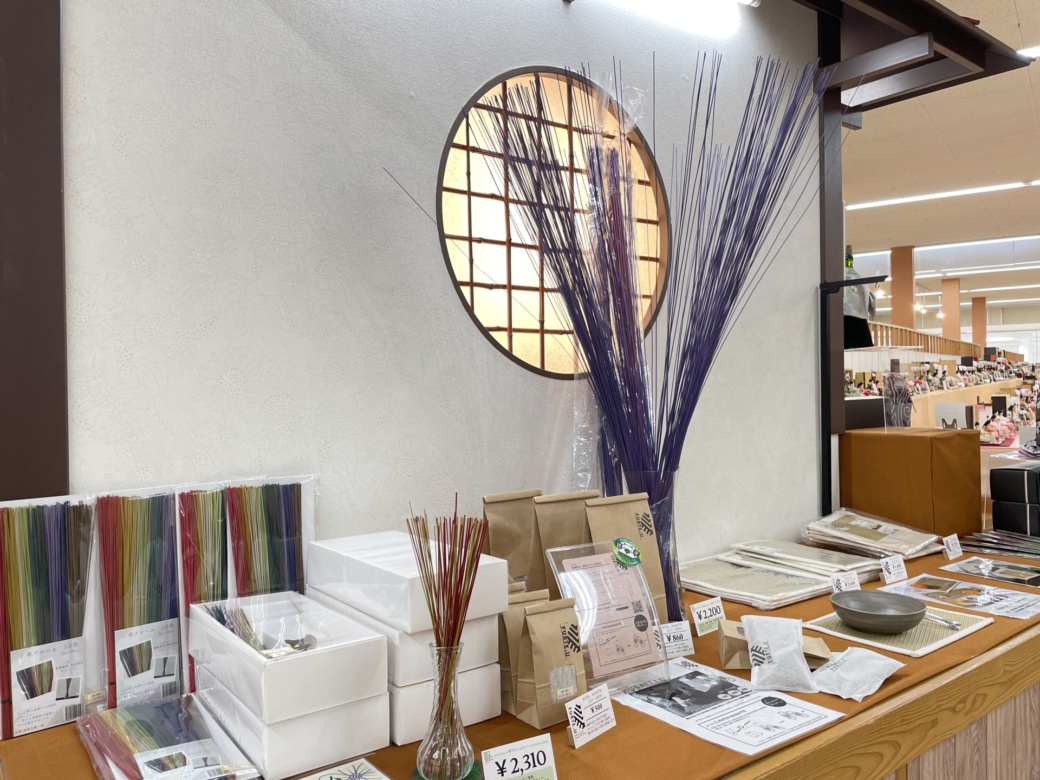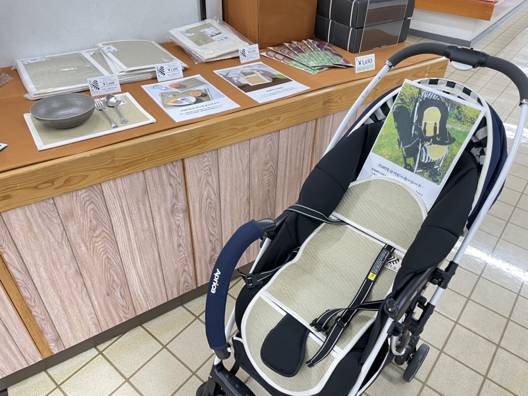 また、福岡県内で130年の歴史を誇る老舗い草製品加工会社のお品も販売しております。