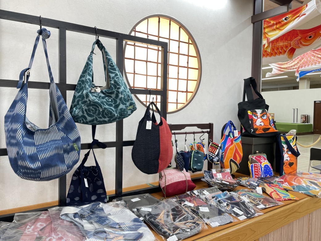 さらに、**福岡県の伝統工芸品「久留米絣」**や、未使用の武者幟(むしゃのぼり)で作った小物・バッグも取り扱っております。