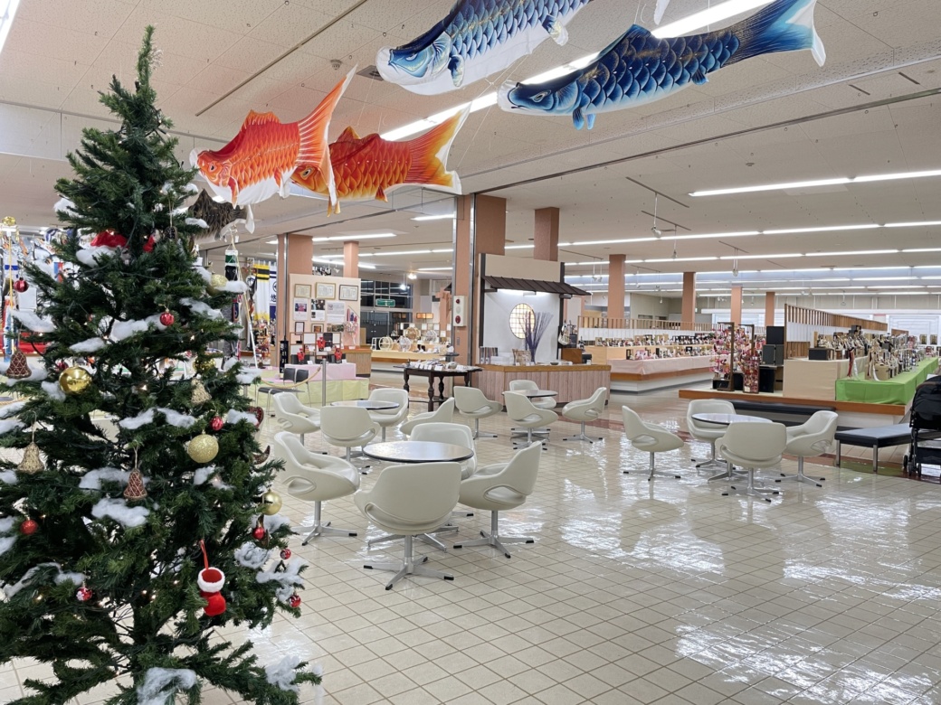 八女四季彩館では、お客様をお迎えする大きなクリスマスツリーとともに、羽子板・破魔弓・雛人形・五月飾り・様々な小物など展示・販売しております。