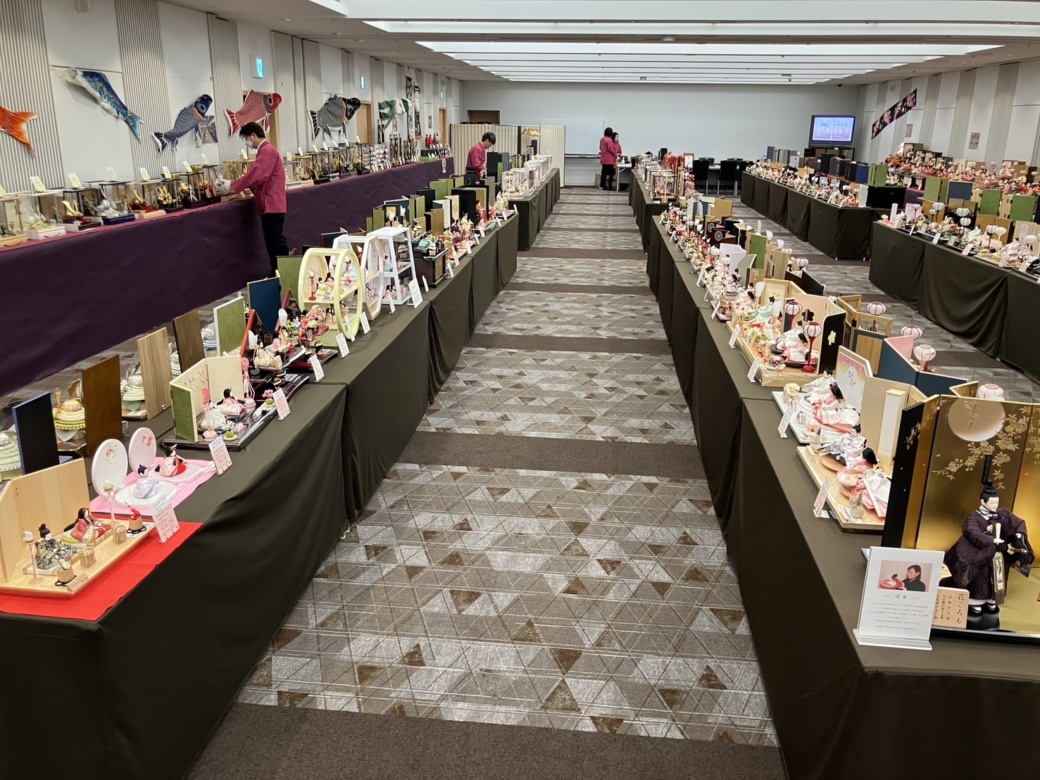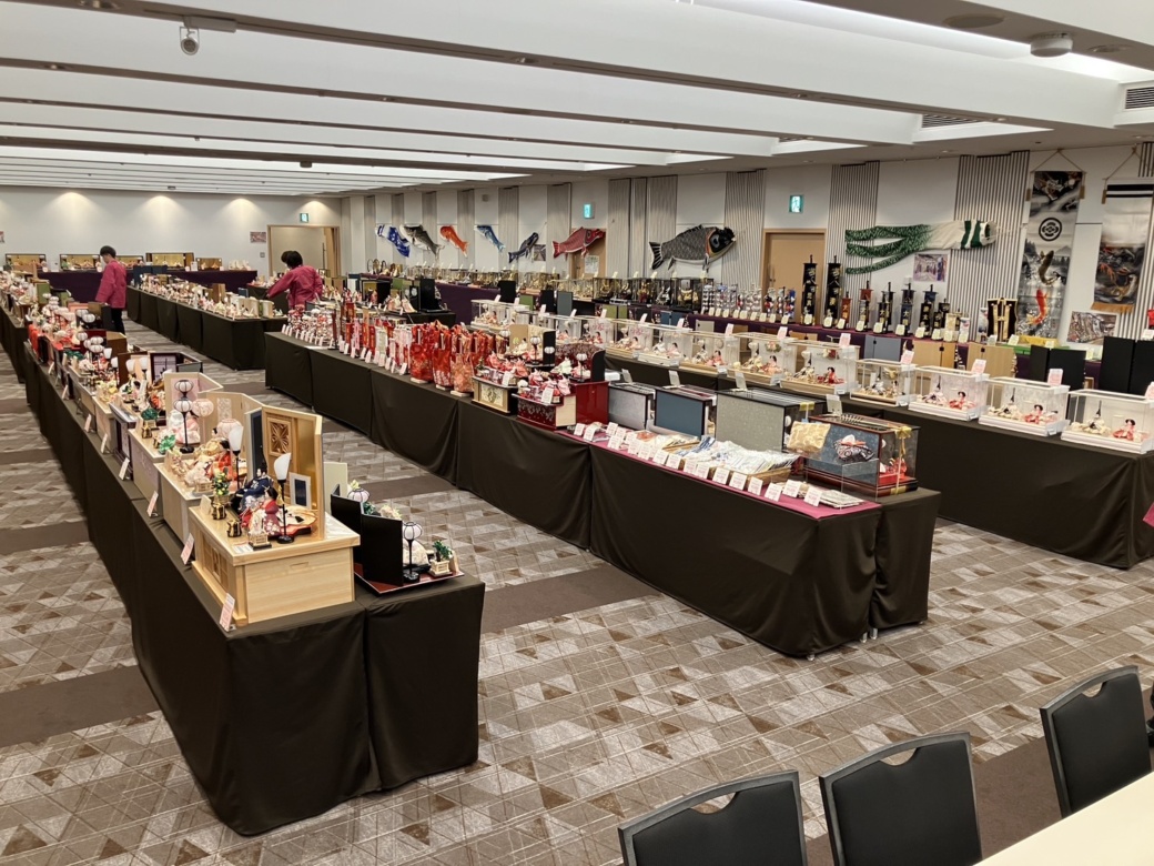 会場では、雛人形・五月人形のほか、名前旗・さげもん(つるし飾り)など多数取りそろえて展示いたしております。自社製作のオリジナル商品をはじめ、トレンドを取り入れたリビングに馴染むデザインや伝統を大切にした雅なお飾りまで、他では普段味わうことの出来ない圧巻のスケールでひな人形・五月人形合わせて約300点を一挙展示。ここでしか出会えない節句人形を、ぜひお楽しみください。