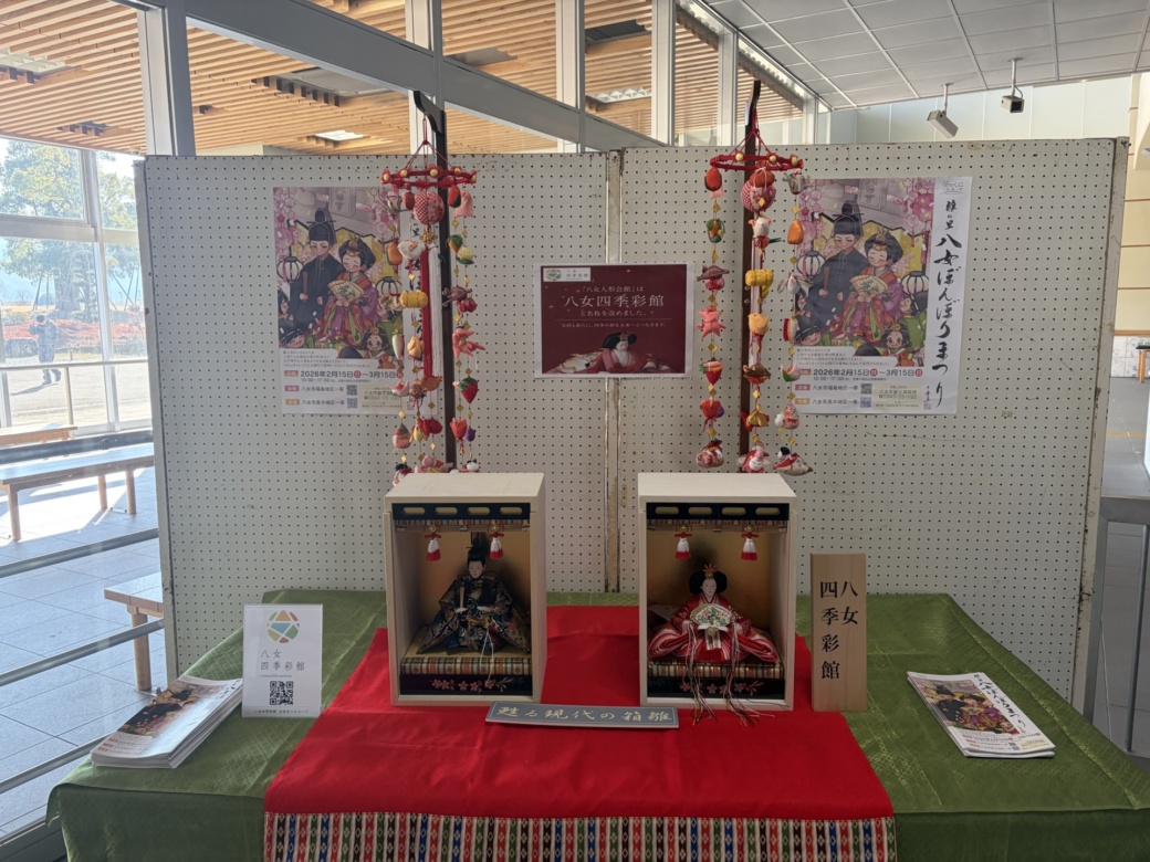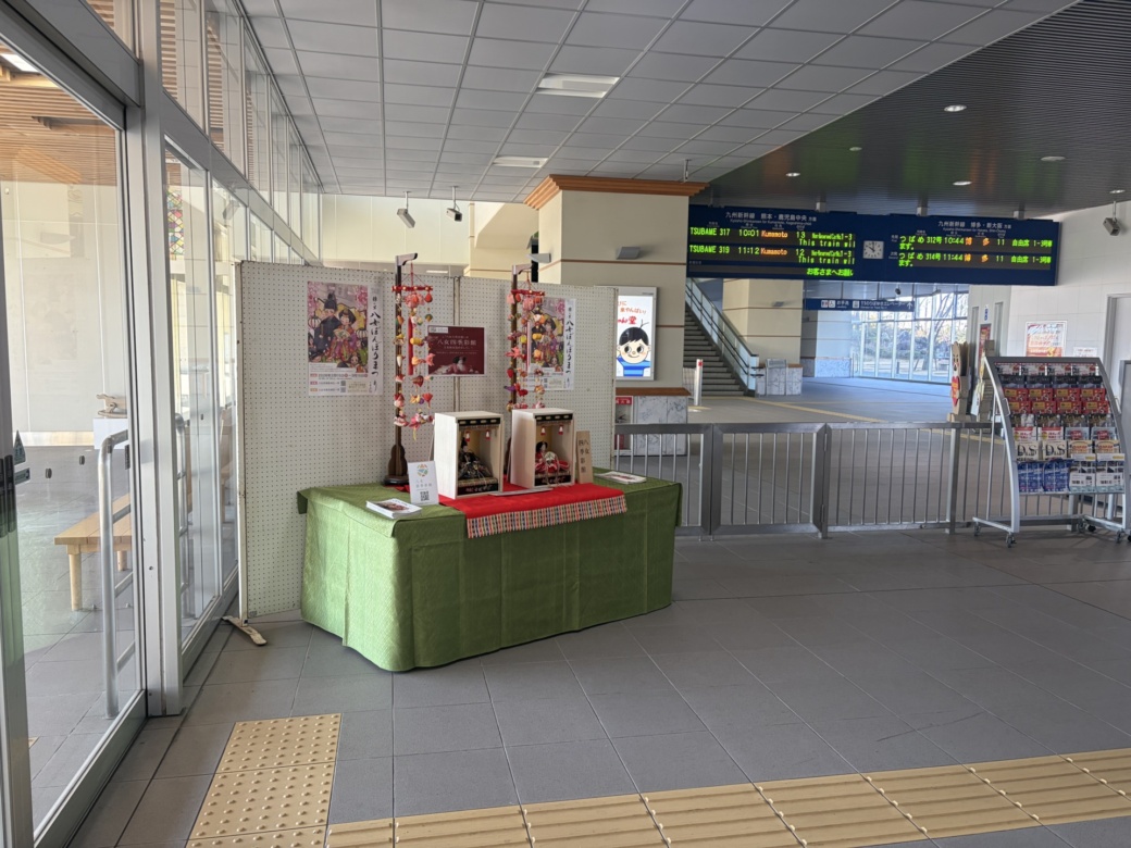 先日、JR筑後船小屋駅にて、雛人形(箱雛)飾りを展示しております。