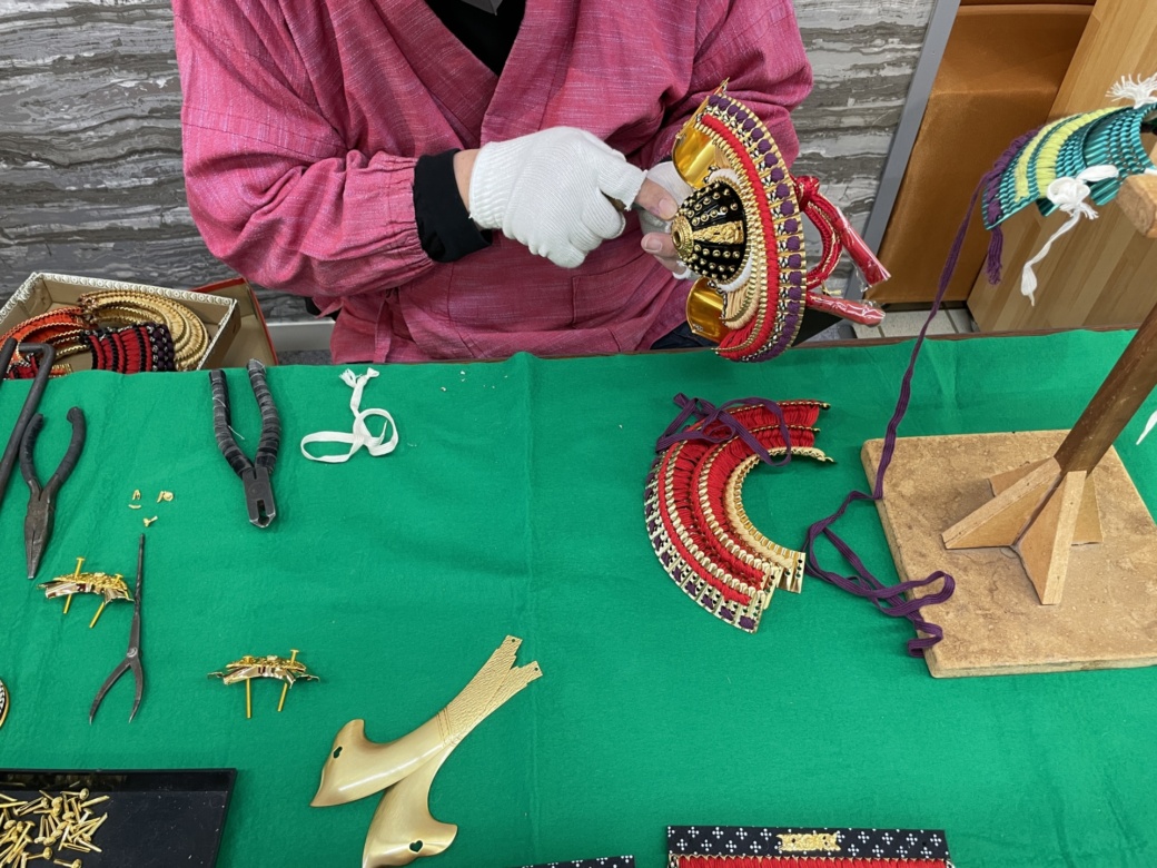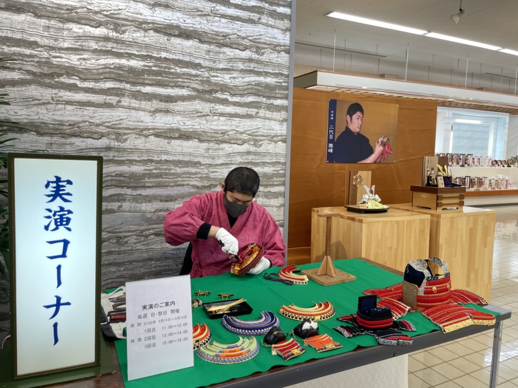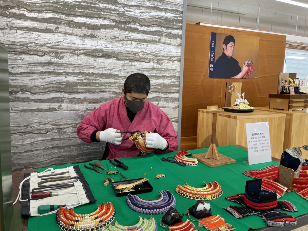 本日の実演:3月8日(日)は、節句人形工芸士(雅峰氏)による五月人形制作です。