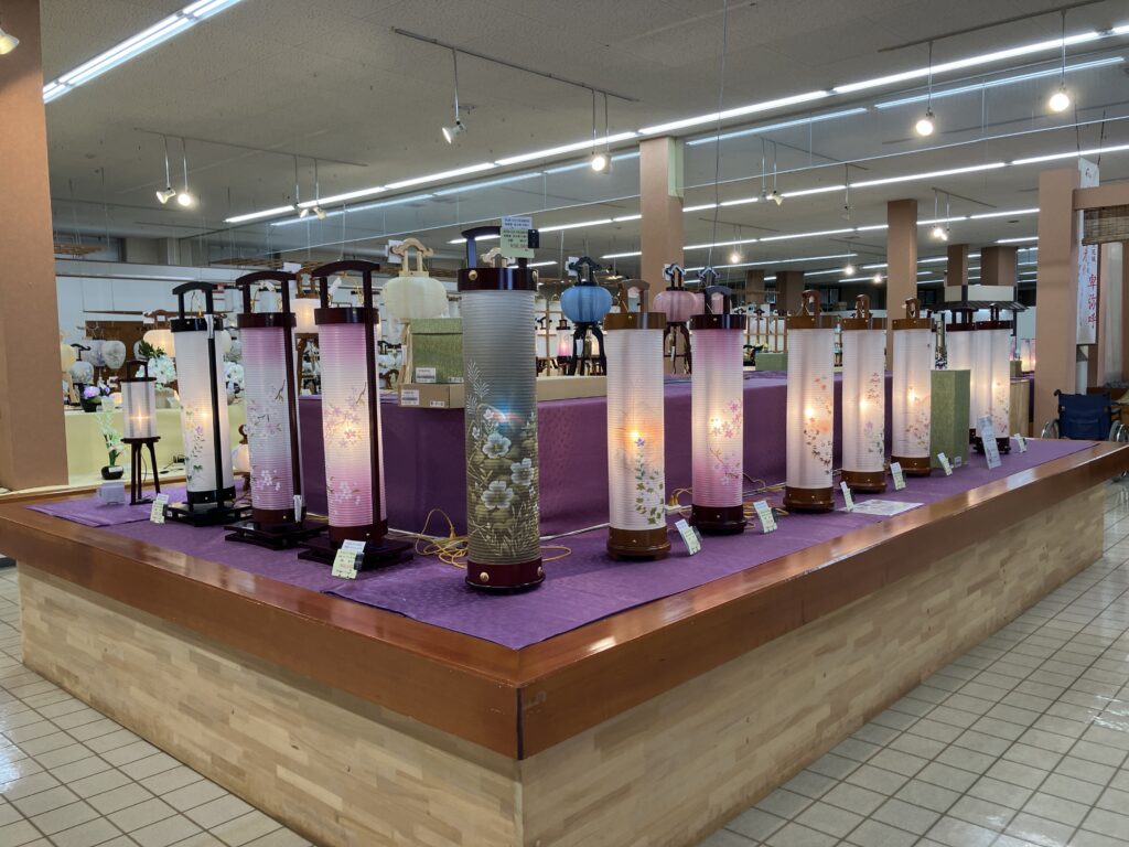 八女人形会館では館内に、たくさんの盆提灯を展示・販売しておりますが、オンラインショップでも様々な商品を掲載しております。