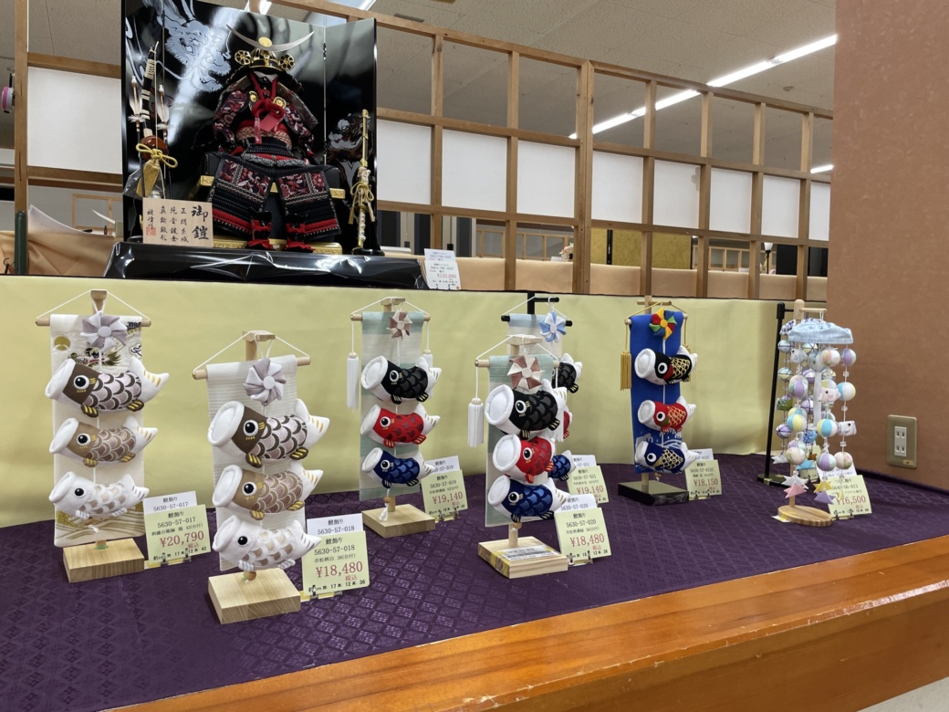 たくさんの五月人形・武者幟・鯉のぼりなど展示し販売しております。