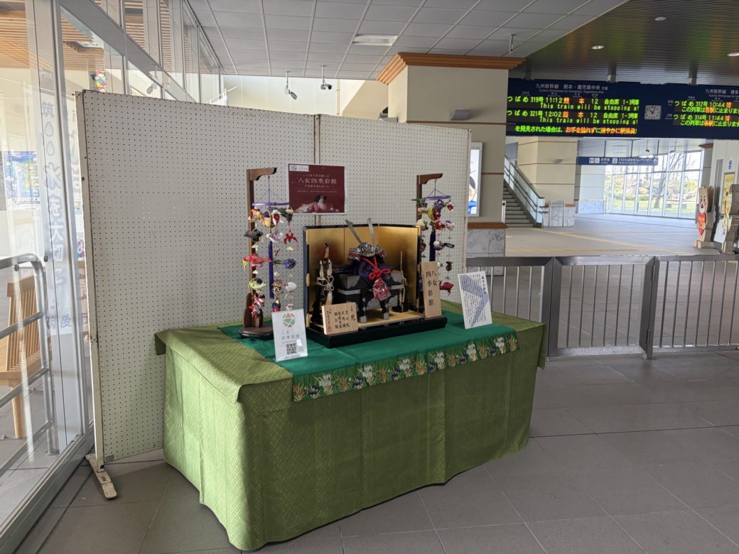 先日、JR筑後船小屋駅にて飾らせて頂いてました雛人形を五月人形へ と飾り替え致しました。