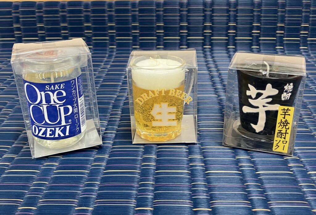 おじいちゃんが大好きだったワンカップ、お父さんが好きだったビールをはじめ、おつまみ(枝豆)やお寿司やうな重、スイカにフルーツ盛り合わせなど様々なキャンドルを用意しています。