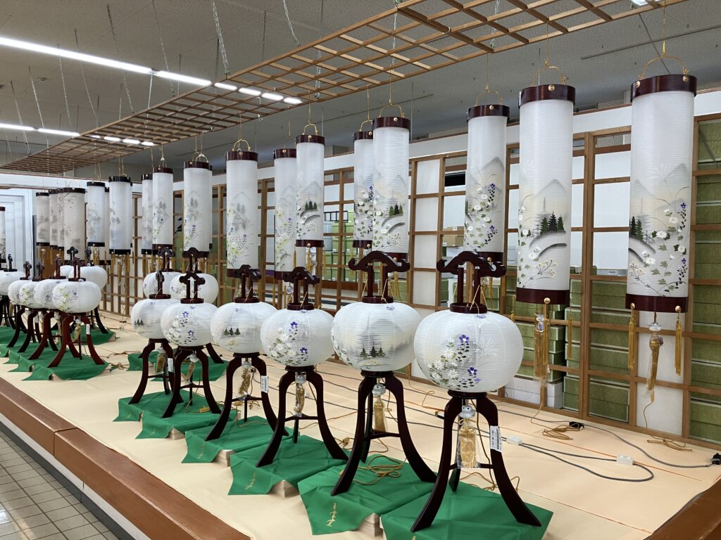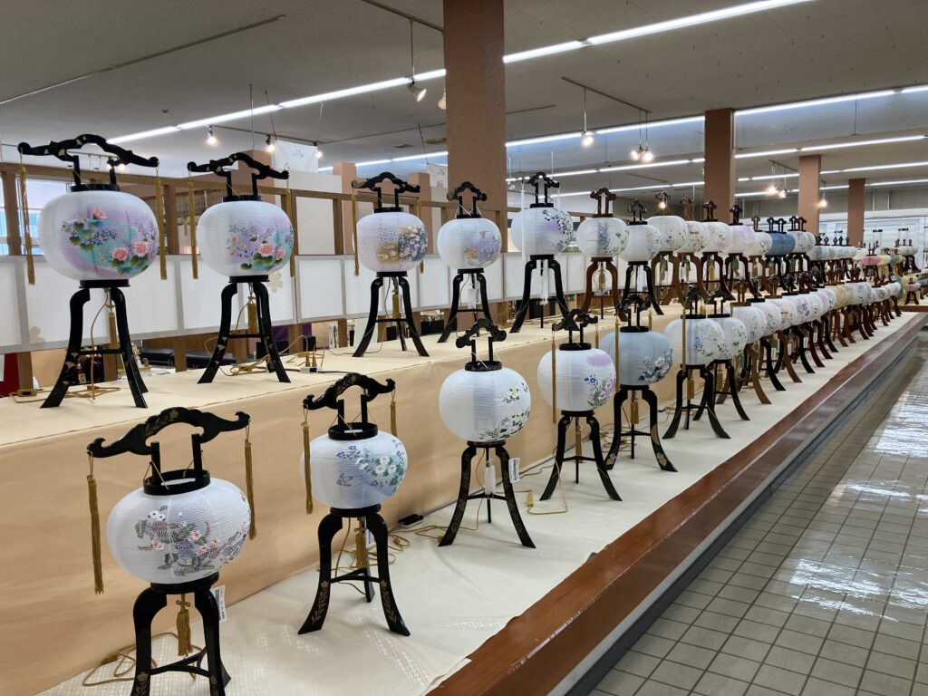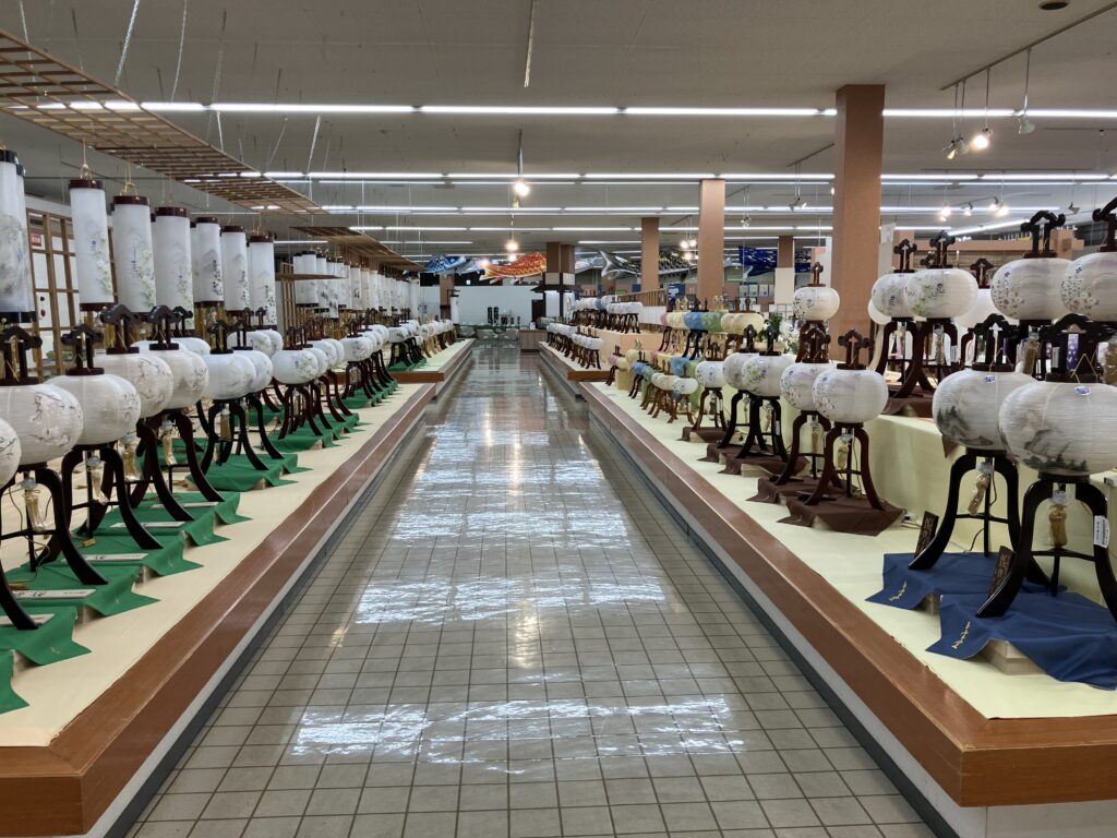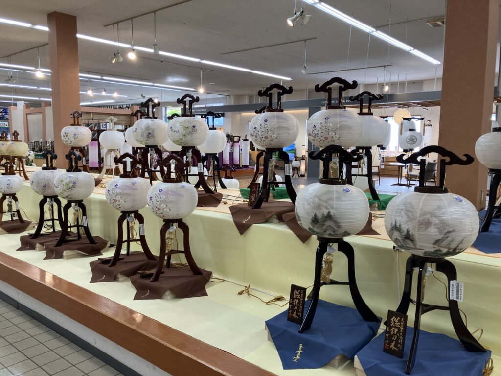 本年も盆提灯の販売が始まりました。多数の提灯を取り揃え、展示販売しております。