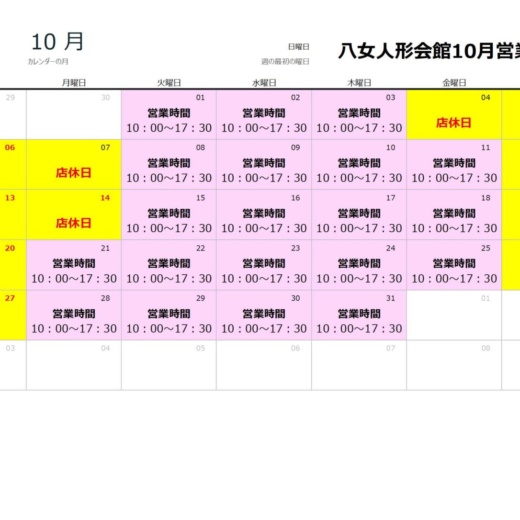 なお、10月末まで、土・日・祝日は休館日となります。11月以降は年末年始を除き、休館日はございません。