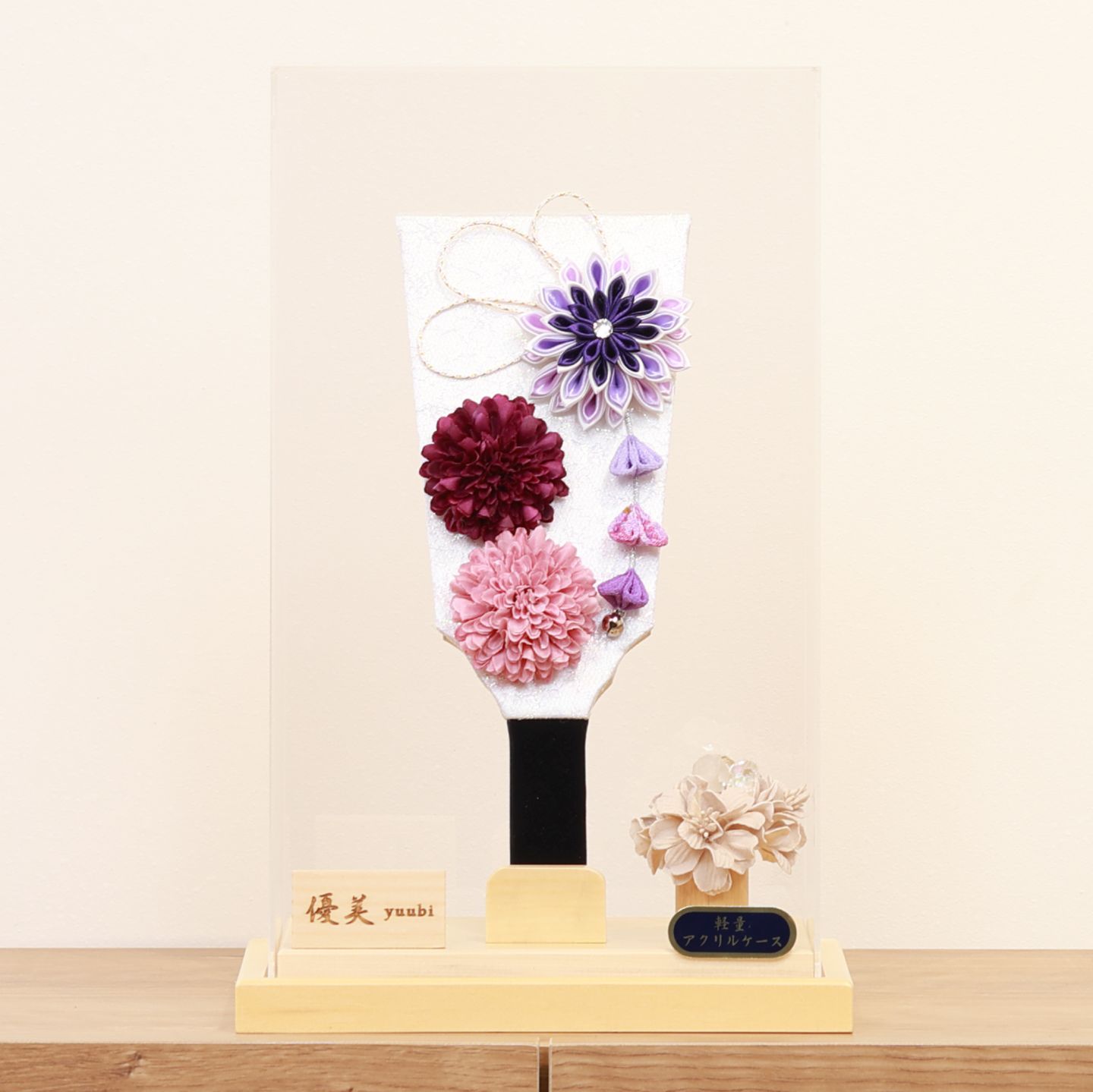 羽子板はお正月遊びの羽根つきに由来し、玉に使われる「無患子」には「子が患わない」という願いが込められています。病や厄をはねのけ、健やかな成長を祈る守り飾りとして発展し、華やかな踊り子を描いた姿は赤ちゃんの笑顔のように福を呼ぶ存在とされています。